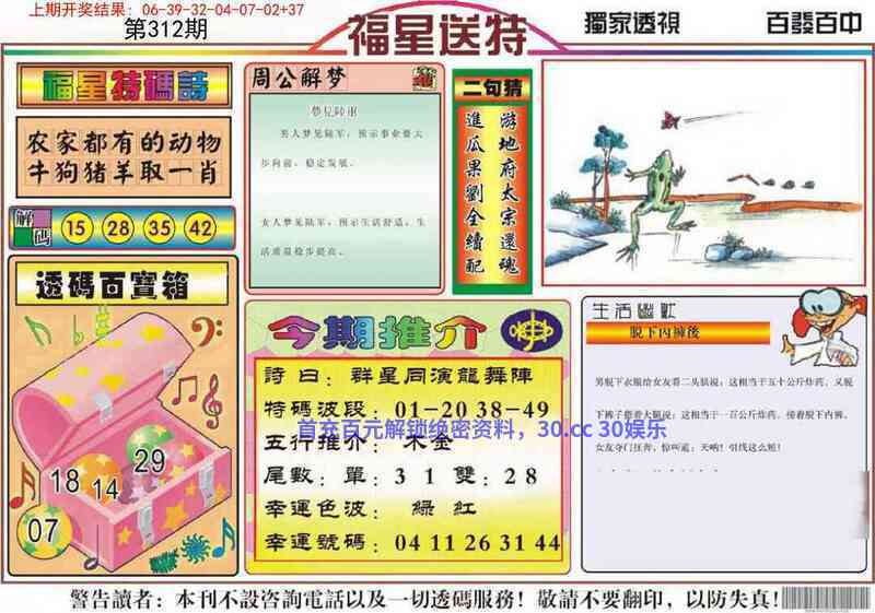 308期:🥂必杀二尾【3.5尾】开:兔39中